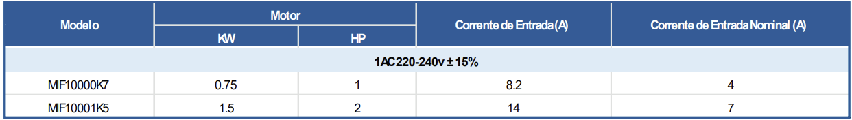 Correntes nominais: 1,6A e 7,3A (1cv e 2 cv)